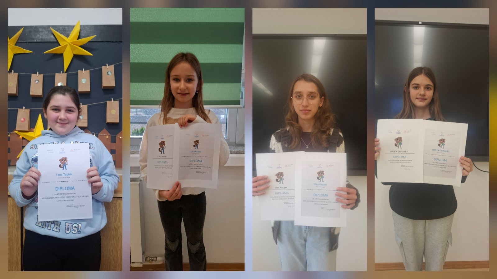 Čestitamo svim učenicima, a posebno ističemo i pohvaljujemo sljedeće učenice koje su ostvarile izniman rezultat te se time plasirale među 10% najboljih u Hrvatskoj i osvojile zlatnu diplomu: