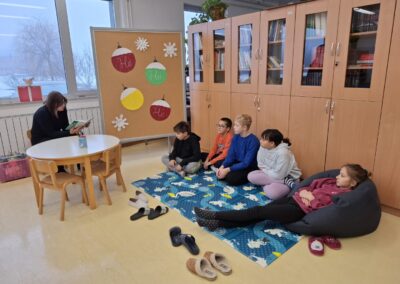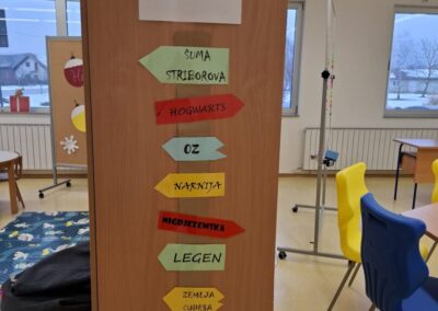 Čitateljski je klub u siječnju u knjižnici postavio knjižni putokaz, pa je ovo bila prilika da se i četvrtašima ukaže na to kako čitanjem zaista putujemo različitim krajevima, a oni su u siječnju putovali čak dvama čudesnim svjetovima – svijetom čarobne šume Striborove i neobičnim gradom divova Legenom.