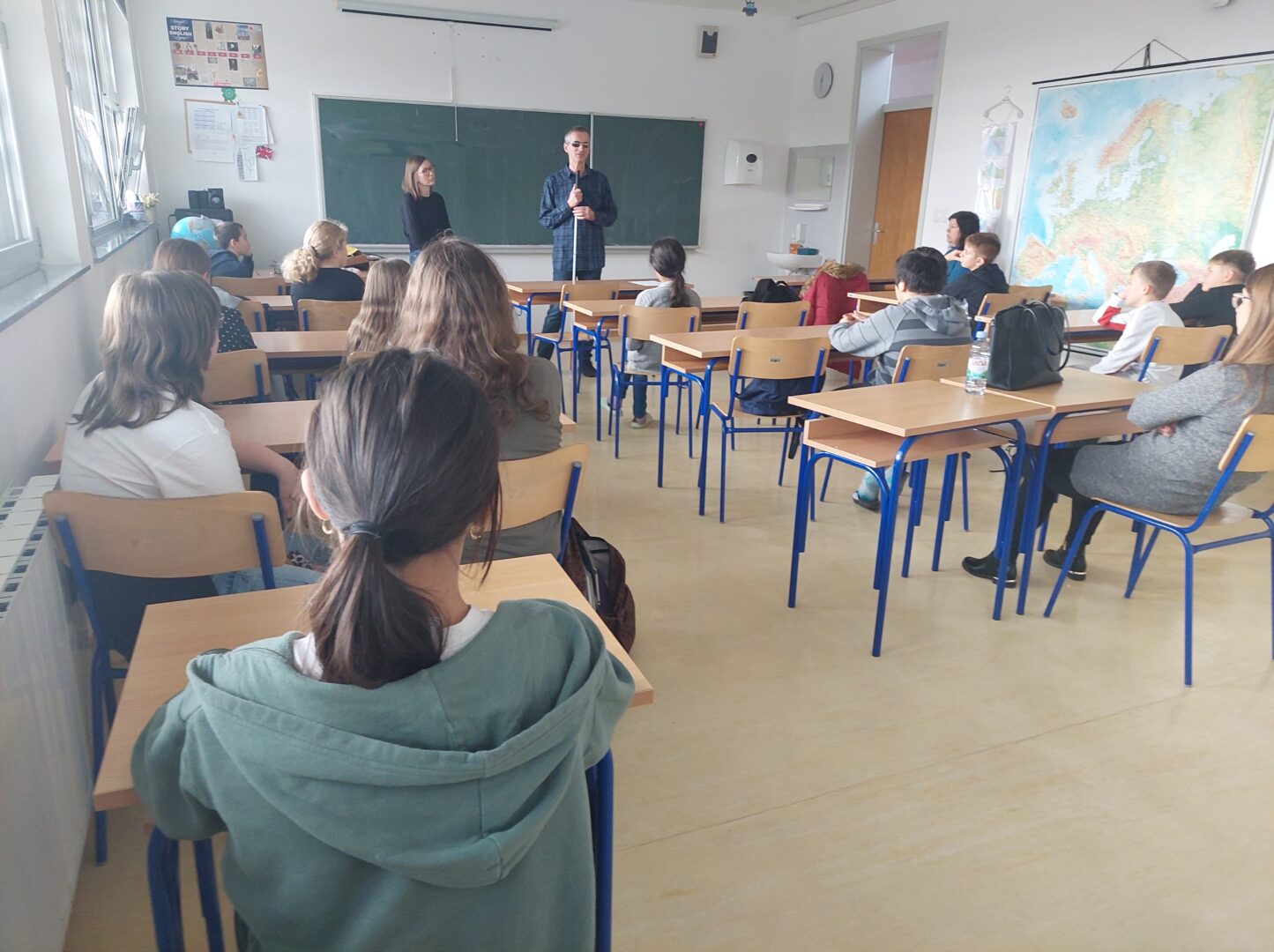 Kroz praktične aktivnosti i iskustveno učenje učenici su dobili priliku iz prve ruke iskusiti kako izgleda svijet ljudi koji žive s oštećenjem vida. Radionica je bila osmišljena tako da potiče aktivno sudjelovanje, promišljanje i konstruktivan razgovor o različitostima. Tijekom radionice učenici su imali prilike isprobati simulacijske naočale kroz koje su upoznali različita oštećenja vida, vježbali kretanje uz pomoć dugog bijelog štapa kako bi dobili dojam zahtjevnosti orijentacije u prostoru i naučili na koji se način slijepe osobe koriste brajicom i zvučnim knjigama u svakodnevnom informiranju i obrazovanju. Također, upoznali su se s osnovama pravilne i sigurne komunikacije sa slijepim osobama. Učenici su aktivno sudjelovali u svim aktivnostima, postavljali brojna pitanja i pokazali zrelo razumijevanje teme. Vjerujemo da su učenici uvidjeli važnost empatije, tolerancije i međusobne podrške, prepoznajući da razumijevanje različitosti obogaćuje školsku zajednicu i društvo u cjelini.